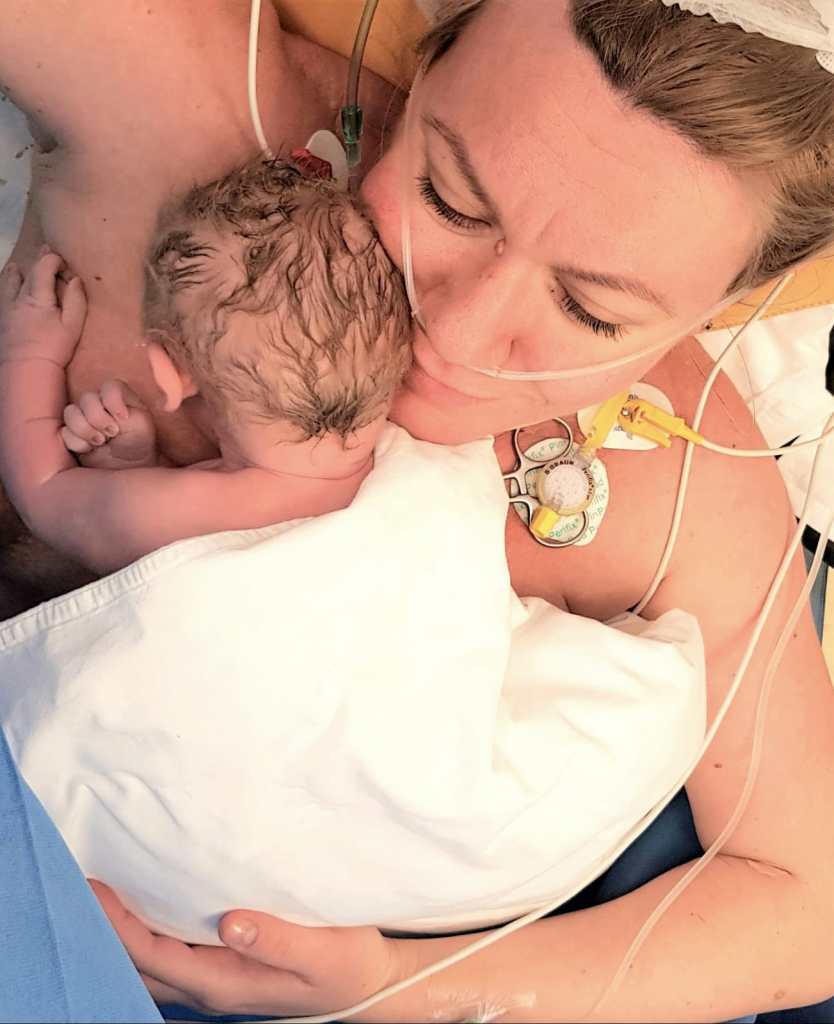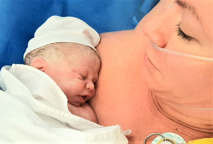Imediat ce a fost scos din burtică, bebe a fost pus pe pieptul meu, în timp ce medicul obstetrician se ocupa de definitivarea operației. Momente unice, cu sentimente ce nu pot fi exprimate în cuvinte, ideale pentru toate femeile care devin mame!