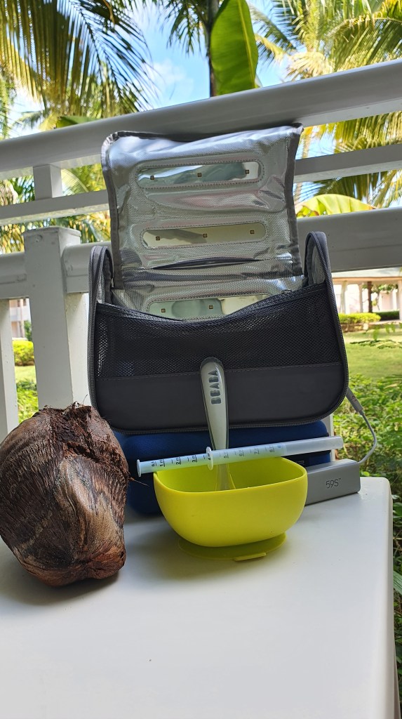 👉mâncare de bebe- folosită, deși ne-au dat borcănele si în avion. Pe lângă, am avut lingurițele lui, păhărelul cu pai pentru apă și suzetele